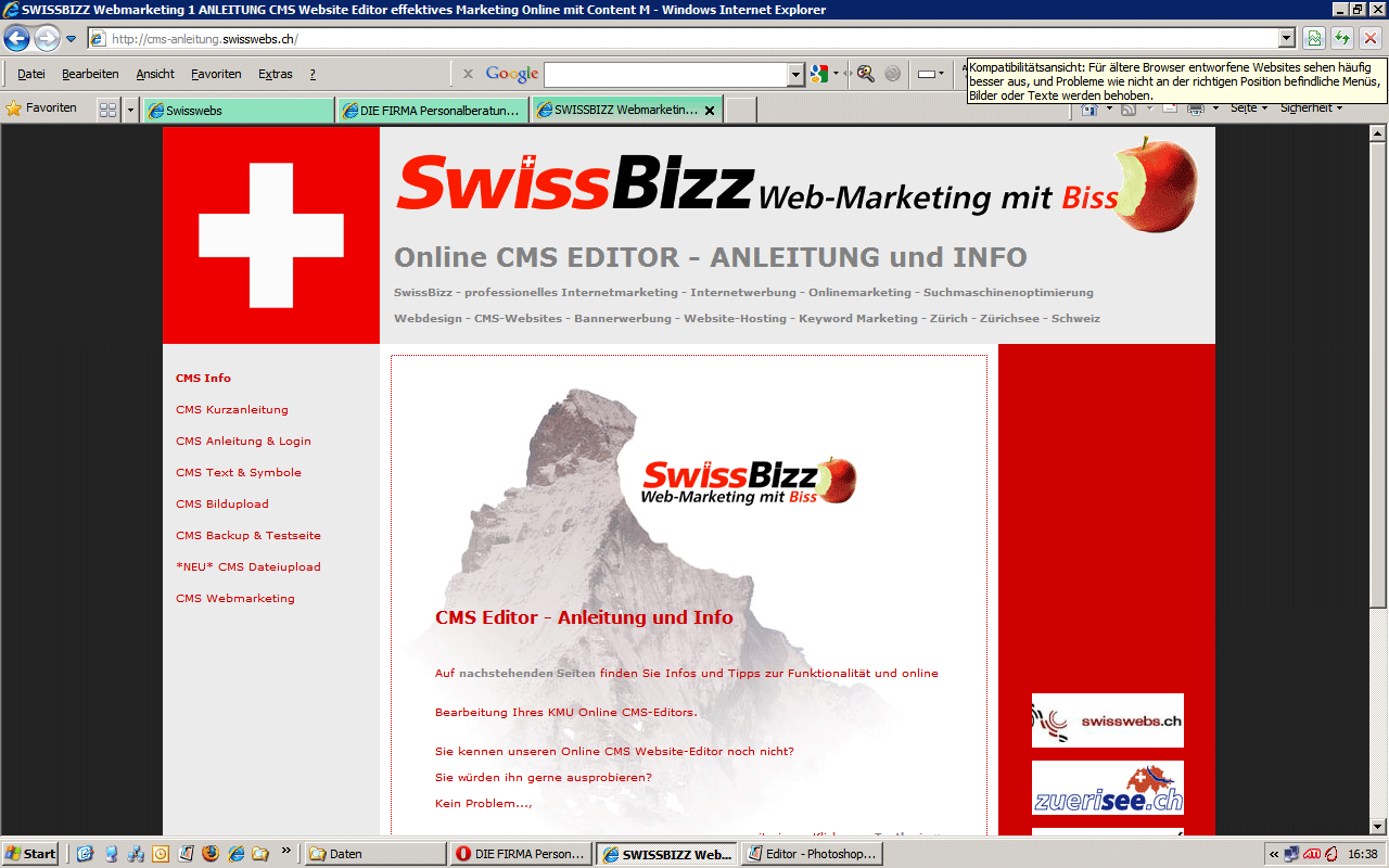 Wenn Sie vorwiegend mit Firefox arbeiten, sollten Sie Ihre Seite IMMER auch im Internet Explorer prüfen. Mozilla verzeiht kleinere Fehler, die sich im Gegensatz unter IE störend auswirken oder die Seite verunstalten können.